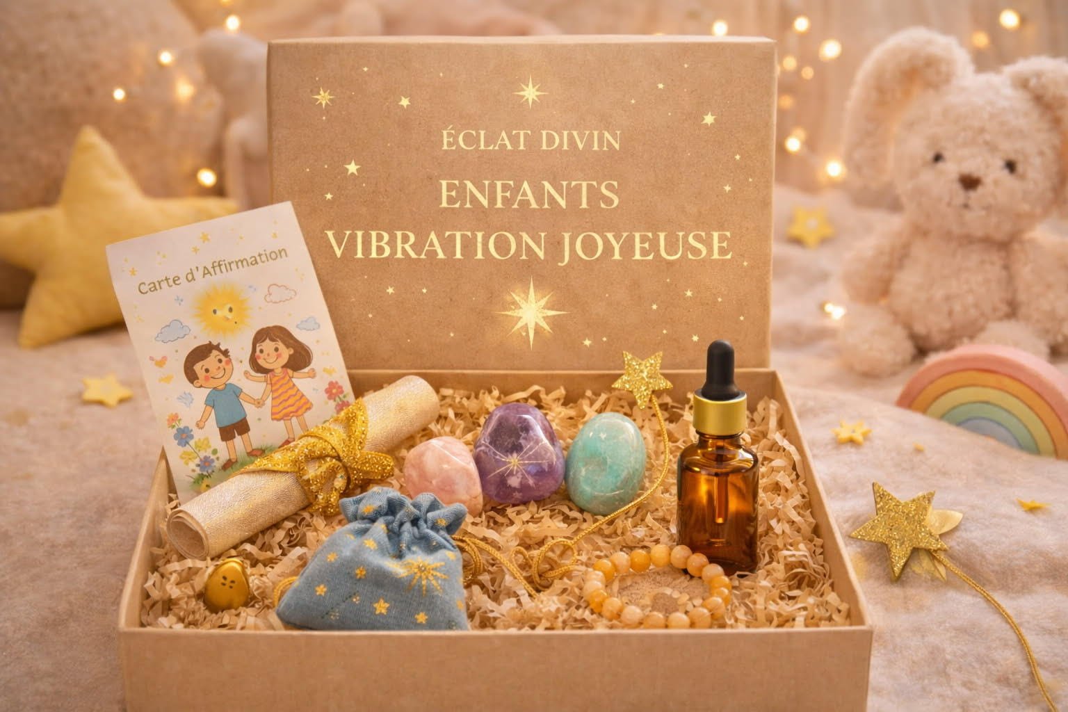 Un coffret unique symbole d’harmonie, âge conseillé de 6 à 10 ans, avec des pierres qui favorisent la sécurité affective, la confiance en soi, l’expression, la joie, réconfortent et rassurent.